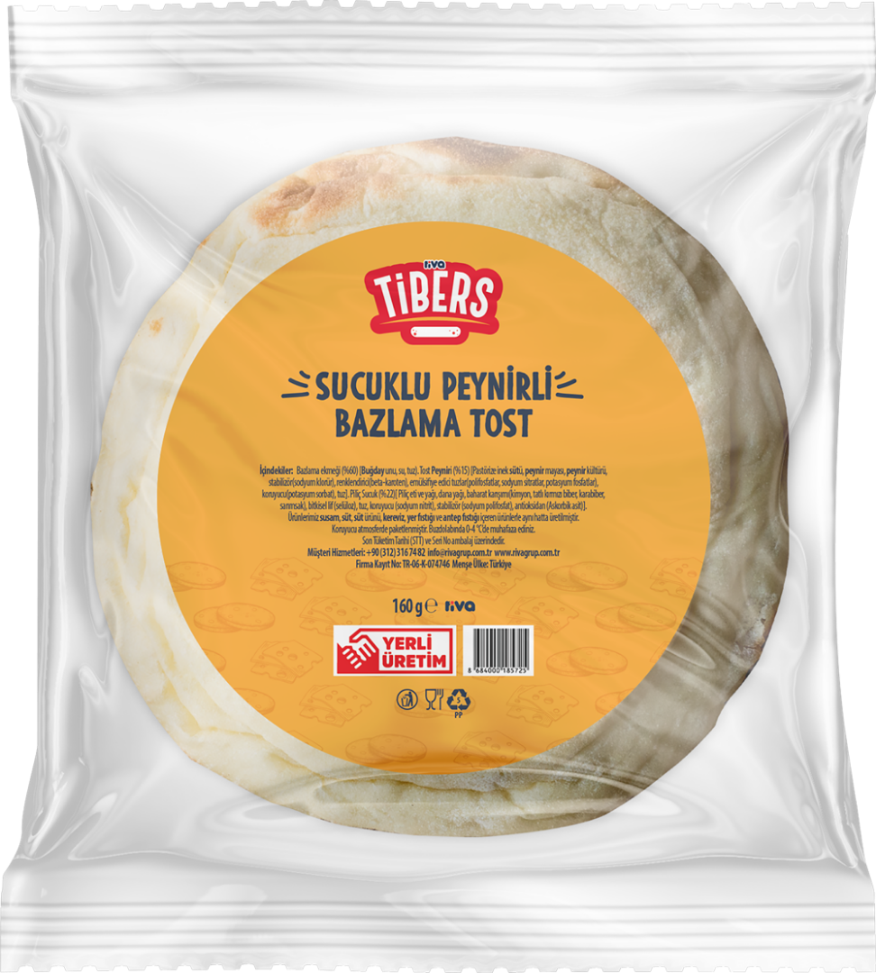 Bazlama ekmeği (%60) [Buğday unu, su, tuz). Tost Peyniri (%15) [Pastörize inek sütü, peynir mayası, peynir kültürü, stabilizör (sodyum klorür), renklendirici(beta-karoten), emülsifiye edici tuzlar(polifosfatlar, sodyum sitratlar, potasyum fosfatlar), koruyucu (potasyum sorbat), tuz]. Piliç Sucuk (%22) [Piliç eti ve yağı, dana yağı, baharat kaışımı(kimyon, tatlı kırmızı biber, karabiber, sanmsak), bitkisel lif (selüloz), tuz, koruyucu (sodyum nitrit), stabilizör (sodyum polifosfat), antioksidan (Askorbik asit)]. Ürünlerimiz susam, süt, süt ürünü, kereviz, yer fıstığı ve antep fıstığı içeren ürünlerle aynı hatta üretilmiştir.